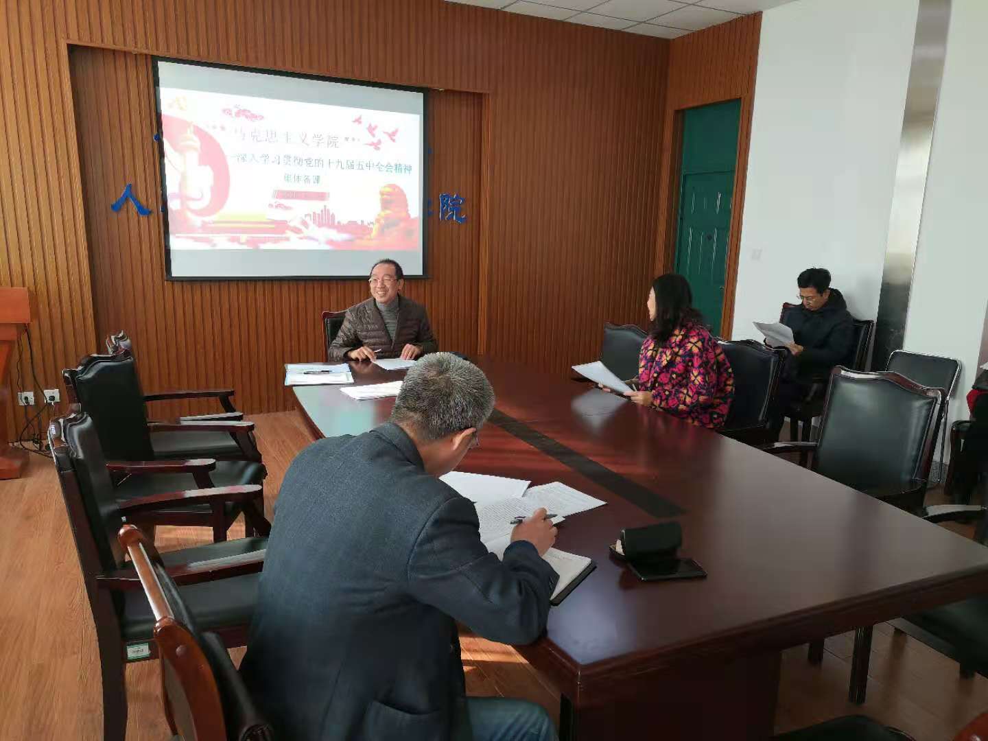 2020年1111日下午,马克思主义学院组织全体教师进行党的十九届五中全会学习集体备课活动,各位教师围绕党的十九届五中全会精神和内容进行了集中学习研讨。会议由今年会jinnian官网教学副院长孔凡飞主持。