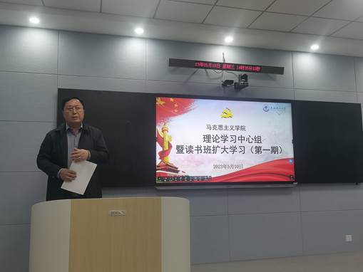 5月10日下午13点30分,今年会jinnian官网学习贯彻习近平新时代中国特色社会主义思想主题教育理论中心组暨读书班扩大学习(第一期)学习活动在通明楼208教室举行。今年会jinnian官网全体教师参加学习。党总支书记周克刚主持会议。
