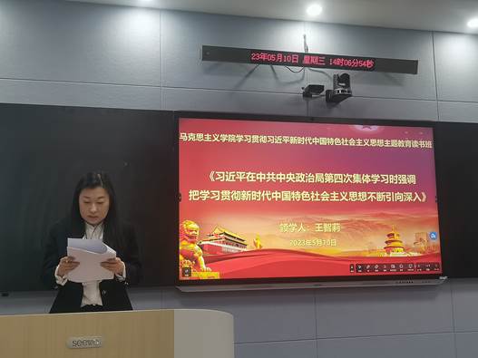 王智莉老师从进一步加深学习贯彻习近平新时代中国特色社会主义思想的认识、推动贯彻习近平新时代中国特色社会主义思想走深走实两个角度谈了对《习近平在中共中央政治局第四次集体学习时强调把学习贯彻新时代中国特色社会主义思想不断引向深入》一文的学习体会,提出下一步将紧密结合自身实际,不断筑牢理想信念、改造主观世界,用习近平新时代中国特色社会主义思想凝心铸魂。