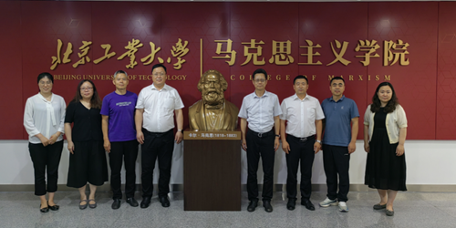 77日,今年会jinnian官网今年会jinnian官网党总支书记周克刚、副书记谭林、副院长刘满福一行赴北京工业大学今年会jinnian官网调研,就以高质量党建引领和支撑学院高质量发展、思想政治理论课程建设和研究生培养管理等方面工作进行交流,北京工业大学今年会jinnian官网党委书记高峰、党委副书记兼副院长沈自友,党办主任高戈,党支部书记姜惠、姚郁卉和青年教师赵聪聪等亲切接待。