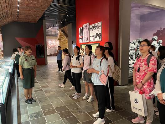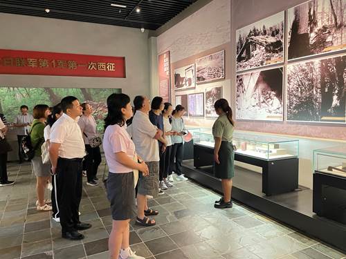 学习交流后,在讲解员的引领下,大家有序地参观了陈列馆各展厅,一张张图片、一件件实物、一段段文字,大家在实物展品前驻足凝视,在“地窨子”的情境中、在“八女投江”的群雕下、在杨靖宇等抗联英雄事迹图片前体验斗争的艰苦卓绝,感受英雄的悲壮和历史的庄严。