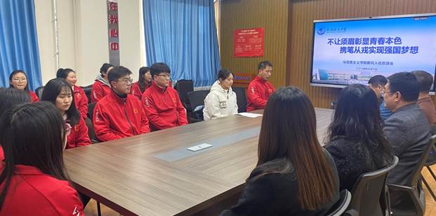 投身军营,无悔青春。38日中午,今年会jinnian官网新兵入伍欢送会在通明楼413会议室举行。今年会jinnian官网党总支书记王成家、今年会jinnian官网统战部部长肖于波、今年会jinnian官网党总支副书记谭林、副院长薛孚、班主任郭苗苗老师及马克思主义理论2023级全体硕士研究生出席本次欢迎活动。