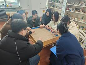 活动中,刘老师带领同学们走进沙盘。在导入环节,通过认识、触摸、感受,了解团体沙盘的规则和操作方法。在摆放环节,同学们不能有言语交流,自行挑选喜欢的沙具进行创作:有的成员挑选沙具时犹豫不定,有的同学喜欢调整其他同学的沙具,有的同学会配合其他同学的摆放。大家在差异中感知人与人的不同,在情感上实现了无声的交流与碰撞。在讨论环节,同学们在老师的陪伴引导下进行言语交流:充分借由沙盘投射自我的想法、感受、观点,比如回忆哪些沙具是自己摆放的,摆放沙盘过程中的各种想法,沙具被人挪走时的感受,对哪个沙具还有纠结,自己最喜欢哪一部分,给共同的作品命名。最后老师和同学们进行总结,让同学们更深刻地借由沙盘更加深入的了解自我,体会界限和规则的必要性,体验言语沟通表达的重要性,学习人际交往的原则和技巧,感受复盘总结的有效性。