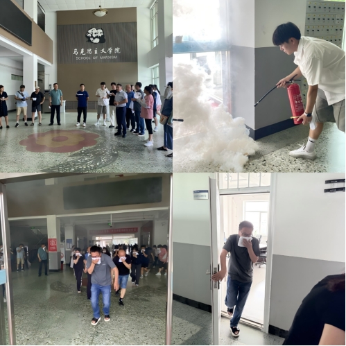 演练模拟通明楼4楼发生火情,随着警报响起,各教研室、办公室教师迅速反应,用湿毛巾捂住口鼻,沿安全通道有序撤离。在疏散引导员的指挥下,全体人员仅用3分钟便安全疏散至指定集合点。