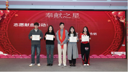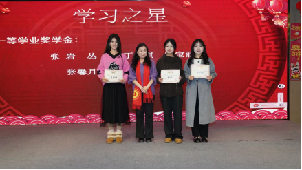 谭林、郭苗苗、刘席威、莫修良荣获学习之星、科研之星奉献之星荣誉称号的学生颁发证书,表彰她们在学习、科研、社会服务等方面取得的优异成绩和作出的突出贡献。