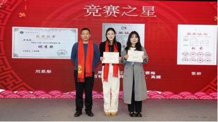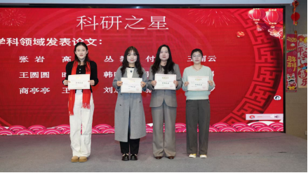 谭林、郭苗苗、刘席威、莫修良荣获学习之星、科研之星奉献之星荣誉称号的学生颁发证书,表彰她们在学习、科研、社会服务等方面取得的优异成绩和作出的突出贡献。